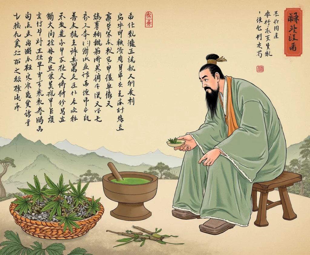 En la China antigua, proporcionaba fibras resistentes para ropa y cuerdas, y se empleaba con fines medicinales — documentado en el Shennong Ben Cao Jing.